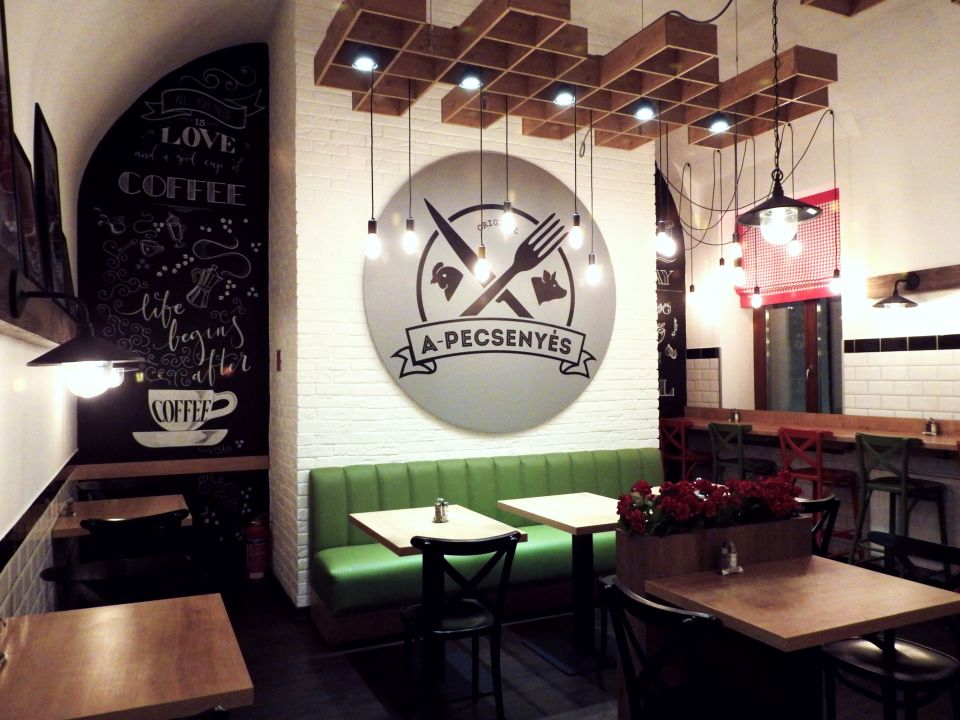 A-Pecsenyés magyaros gyorsétterem célja, hogy a már jól ismert fastfood éttermek hangulatát azok számára is elérhetővé tegye, akik a magyar konyhát részesítik előnyben. Ennek megfelelően kifinomult környezetben, gyors kiszolgálással, magyar alapanyagokból készült ételekkel és jó hangulattal várjuk azokat, akik két megbeszélés között, az órák szünetében vagy útjukon megéhezve szívesen otthon éreznék magukat – akár csak arra a pár percre is.