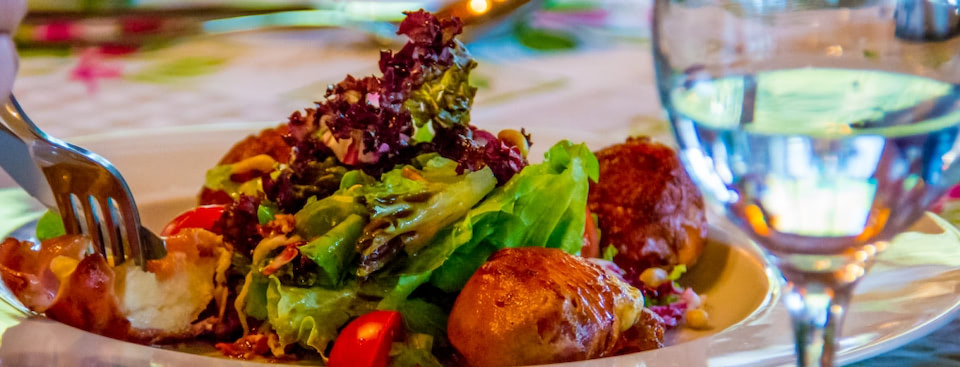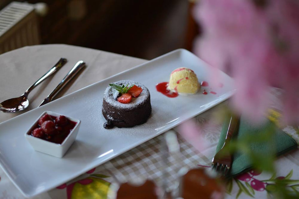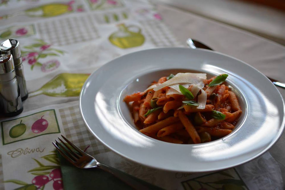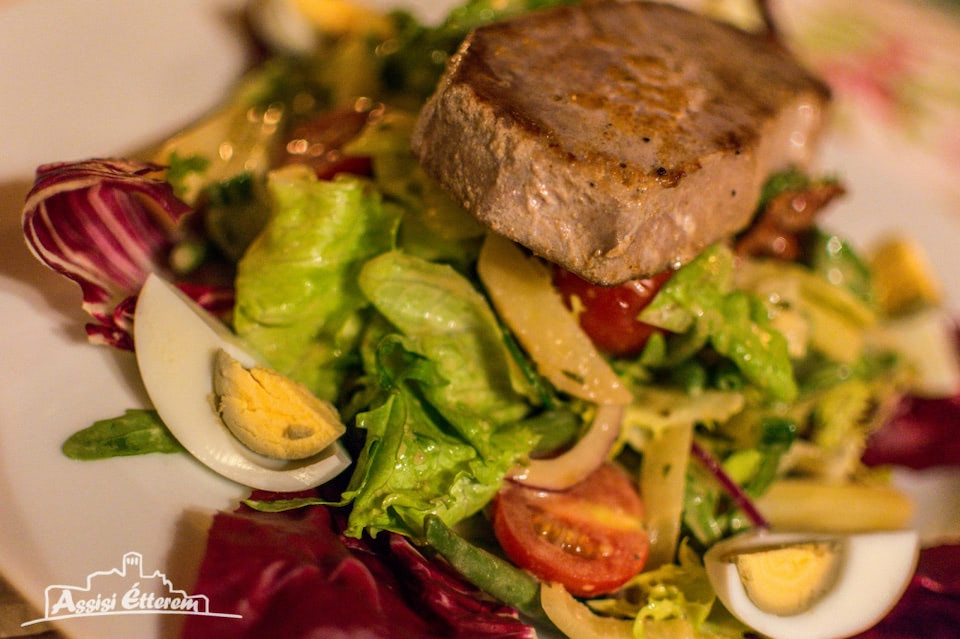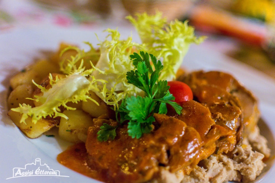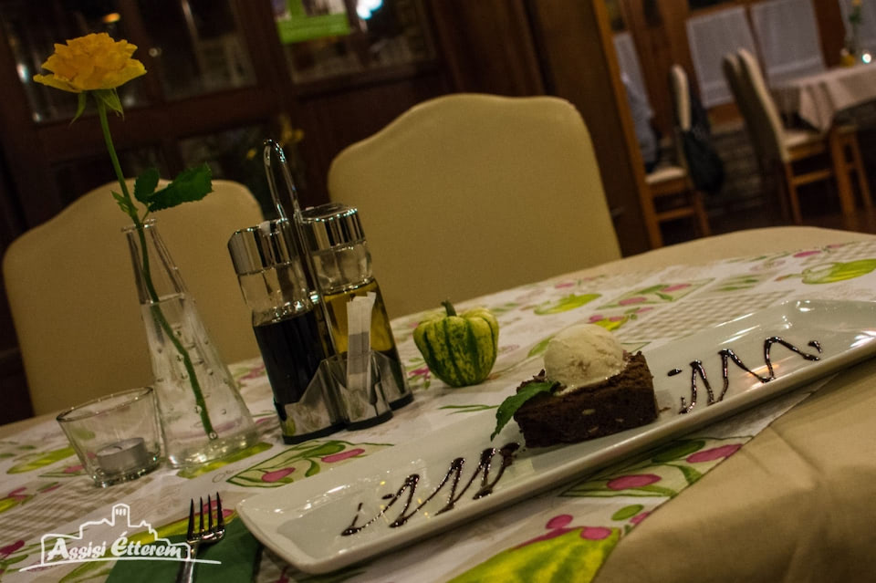A napi menüben igyekszünk a mindenki által közkedvelt ételeket minőségi alapanyagokból, ízletes fűszerezéssel, az otthoni ízek felelevenítésével elkészíteni; az étlapon viszont jellemzően olasz ételkülönlegességek, kisebb mértékben magyaros fogások szerepelnek, így végigkóstolható a hamisítatlan itáliai konyha a pármai sonkába göngyölt, tökmagolajos salátaágyon kínált mozzarellától, a mindig frissen tálalt Tiramisuig, de akár egy Bikavérrel locsolt, pirított reszelt tésztával ajánlott marhapörköltet is megtalál nálunk.